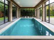 Отдельно стоящий крытый бассейн представляет собой автономное сооружение на участке, позволяющее наслаждаться плаванием независимо от погодных условий.